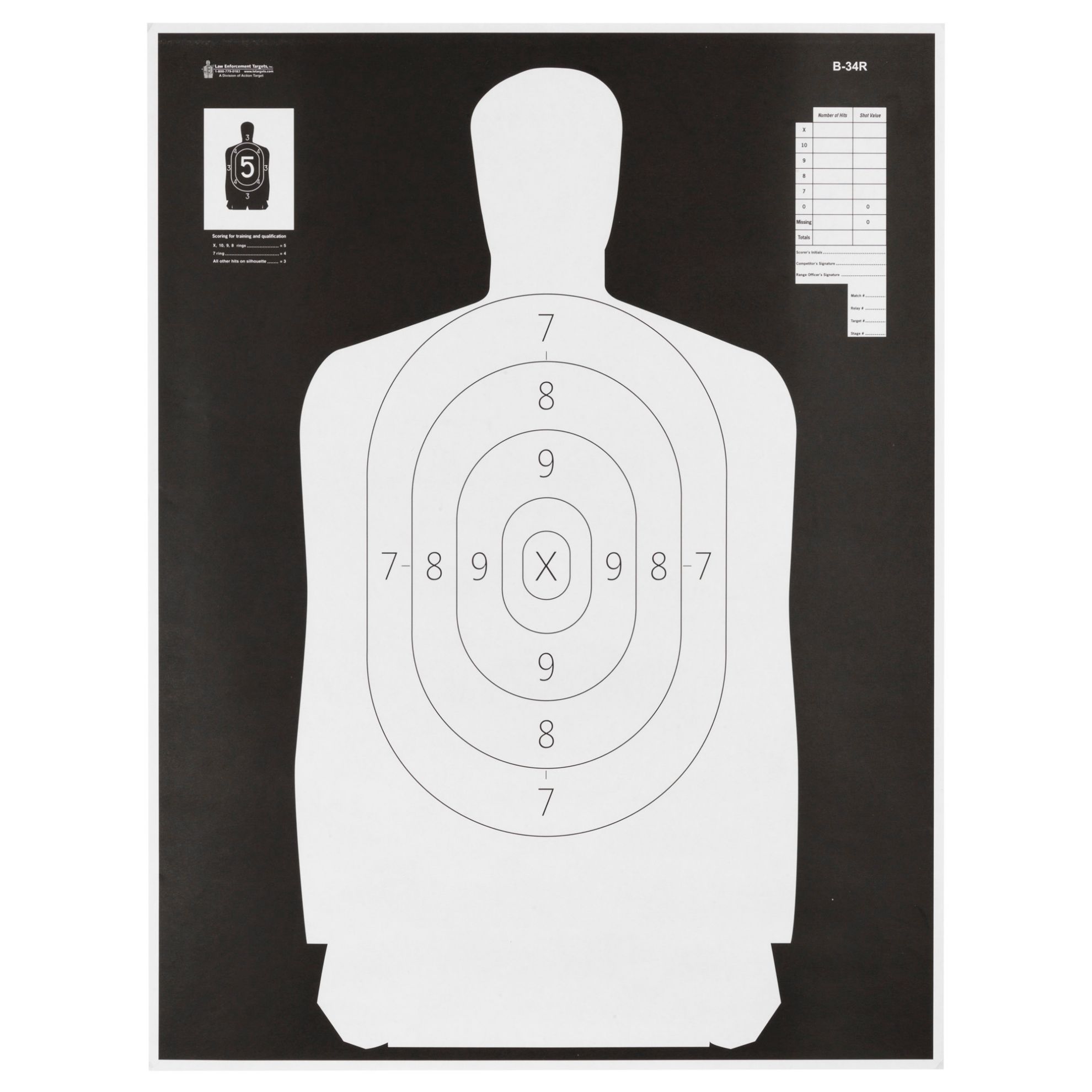 Action Target, B-34R Reverse Qualification Target, 25 Yard Reduction Of B-27, Ivory Police Silhouette With Black Background, 17.5"x23", 100 Per Box