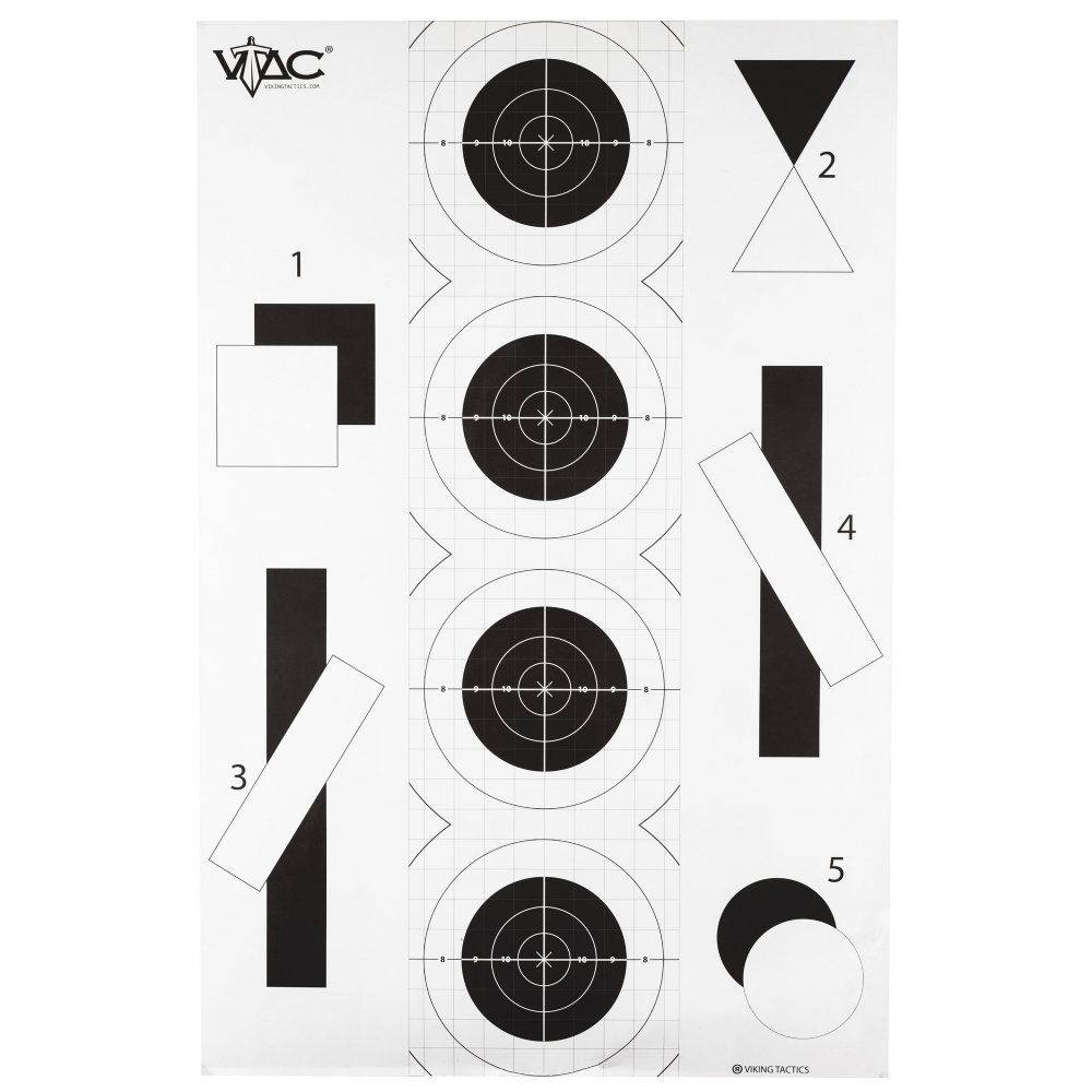 Action Target VTAC-P Viking Tactics Double Sided Advanced Training Target, Marksmanship Side Has 4 SR-1C Bulls-Eye Target w/1" Square Sighting Grid, Silhouette Side w/Visible Skeleton, Black/White, 23"x35", 100 Per Box