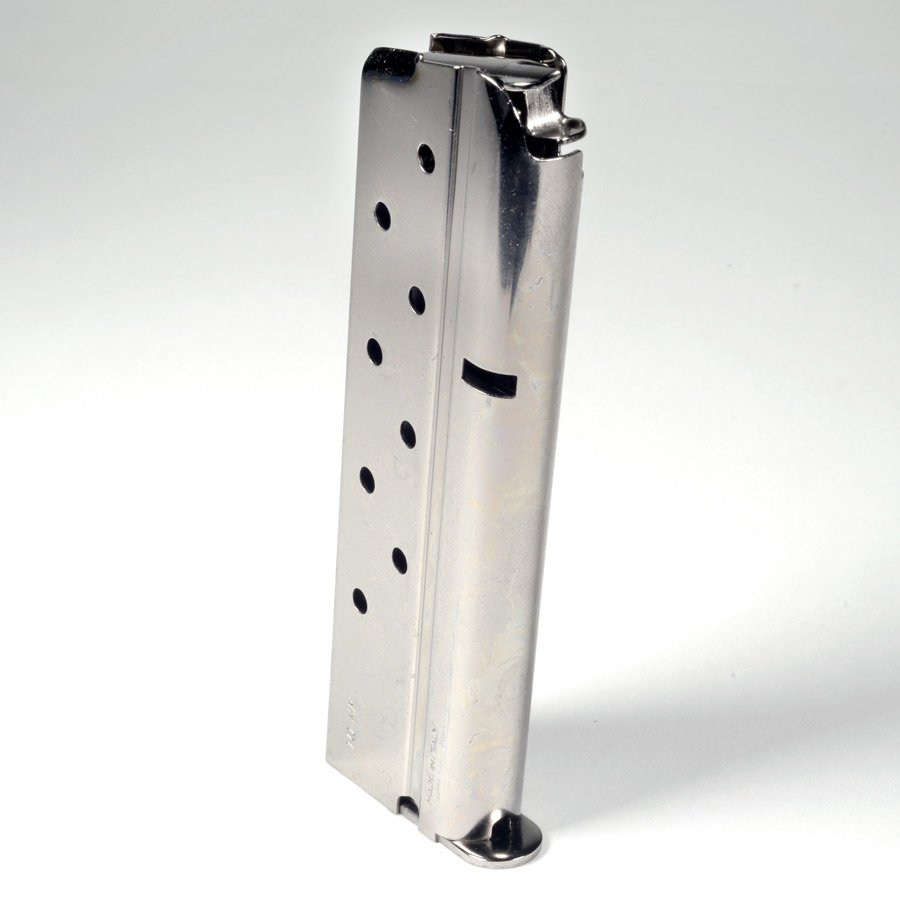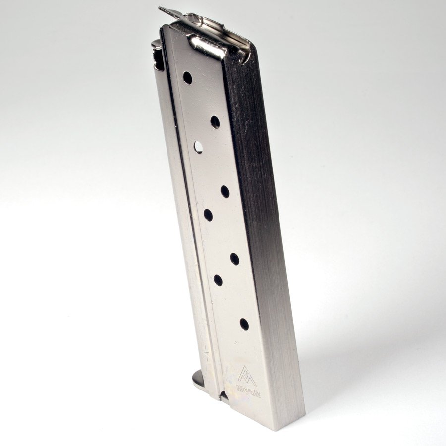 Mec-Gar 1911 Government / Commander 10mm 8rd Nickel Magazine. Top of the line quality from one of the most proven names in magazines.