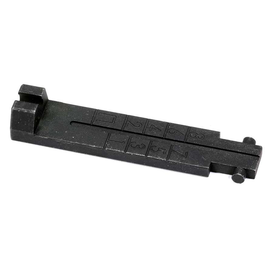Designed as an open peep sight hybrid with the functionality of a fast acquisition sight. Black oxide finish, graduated to 8000 meters. Direct replacement for the original AK rear sight. Please note, this is only the sight, and will not come with the sight adjustment plunger.
