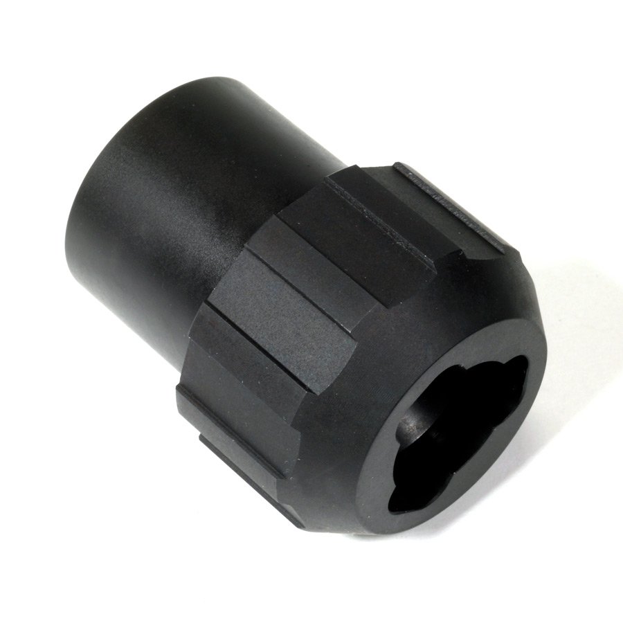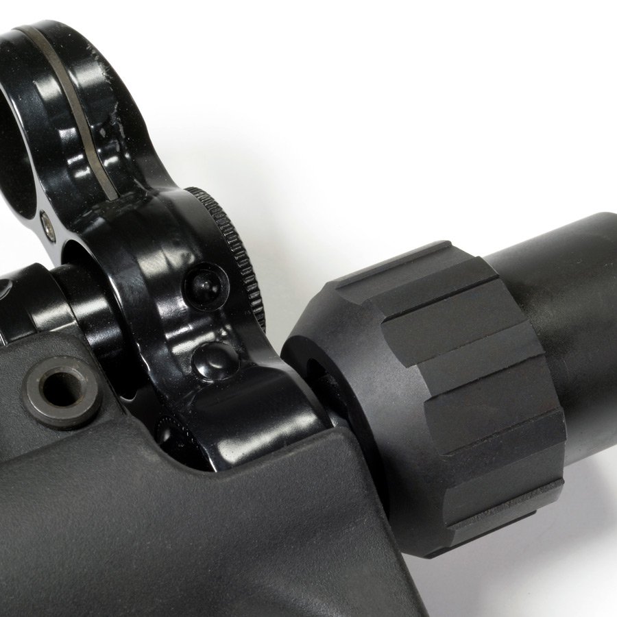 The Ti-RANT TRIAD is an adapter that adds an additional element of versatility to Ti-RANT series silencers by enabling users to quickly and easily install a Ti-RANT onto the lugged barrel of an H&K MP-5 style host or any fixed-barrel 9mm caliber host equipped with a lugged barrel or lugged adapter manufactured to duplicate the dimensions of the lugged H&K barrel. The Ti-RANT TRIAD replaces the A.S.A.P. system in the rear of the Ti-RANT series silencer and can be installed or removed in seconds. Users can easily disassemble the Ti-RANT TRIAD with no tools to perform cleaning and/or maintenance.