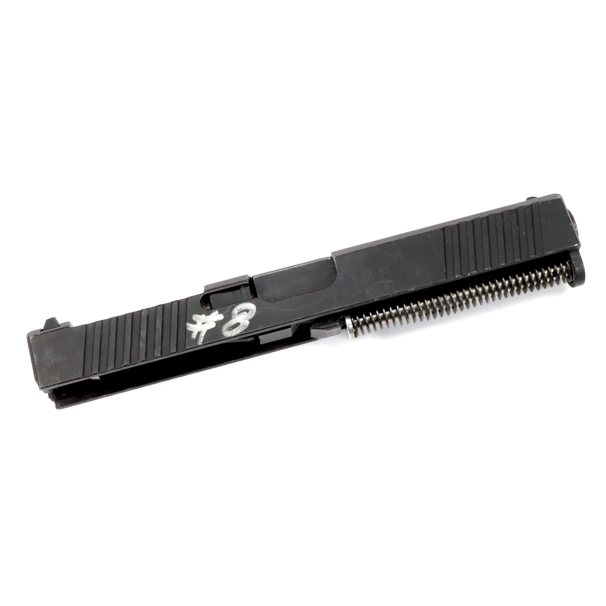 AFTERMARKET GLOCK 17 COMPLETE SLIDE ASSEMBLY, MISSING OPTIC MOUNT COVER PLATE. Easy fix if you planned to use an optic. Will function fine as is. 9mm, very-good condition.