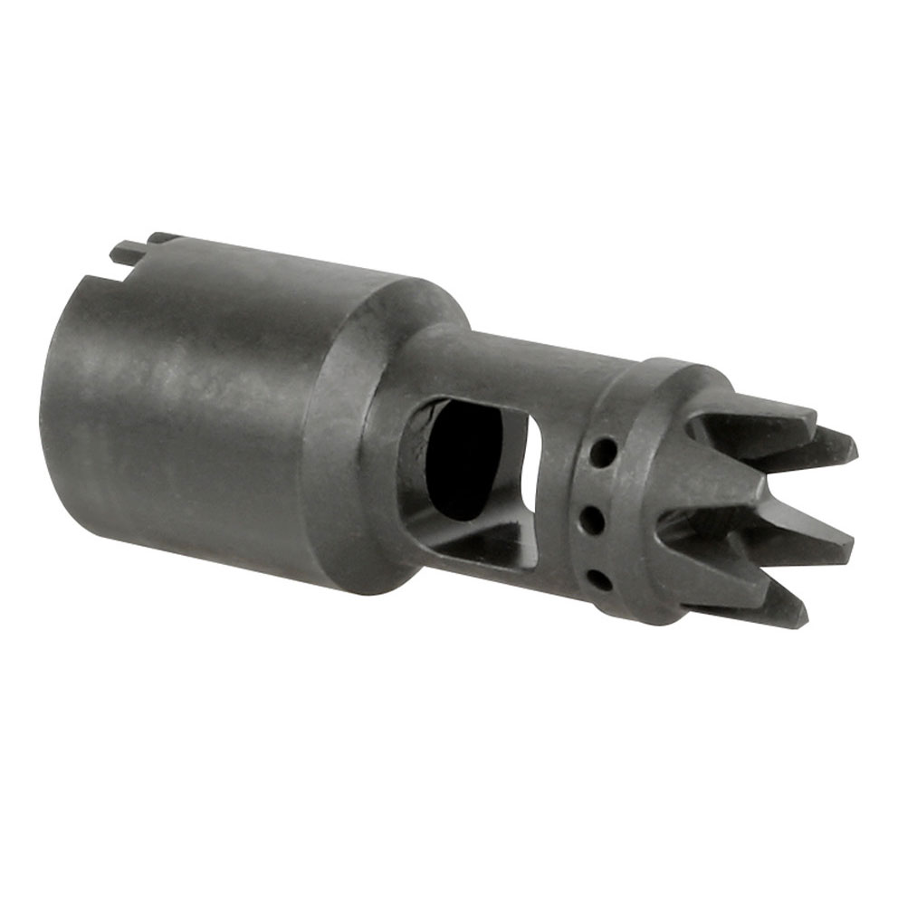 Ak muzzle brake made by Midwest industries constructed from tool steel with a phosphate finish.