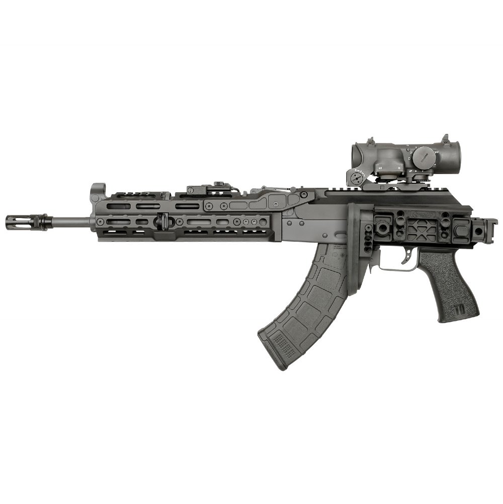 Midwest Industries new Alpha folding stock is here to disrupt the market! This stock features rock solid build quality and tons of adjustment for any rifle configuration. Everything is well machined; there are no sharp edges to cut open any part of you while using this stock. All the contact points on the stock are plastic or rubber and very comfortable. Because of this, the shooter will be less affected by the temperature of the stock in the cold and heat. This is a fantastic option for any rifle platform, not just AKs.