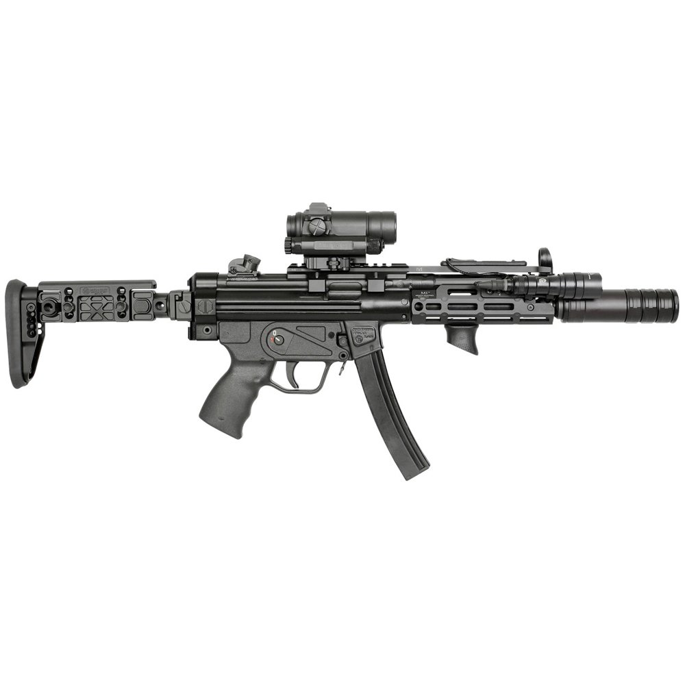 - Adjustable butt pad for increased usability with plate carriers or heavy gear.