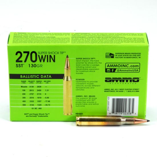 Ammo Inc, Signature Hunt LR, 270 Winchester, 130 Grain, Super Shock Tip (SST), 20 Round Box