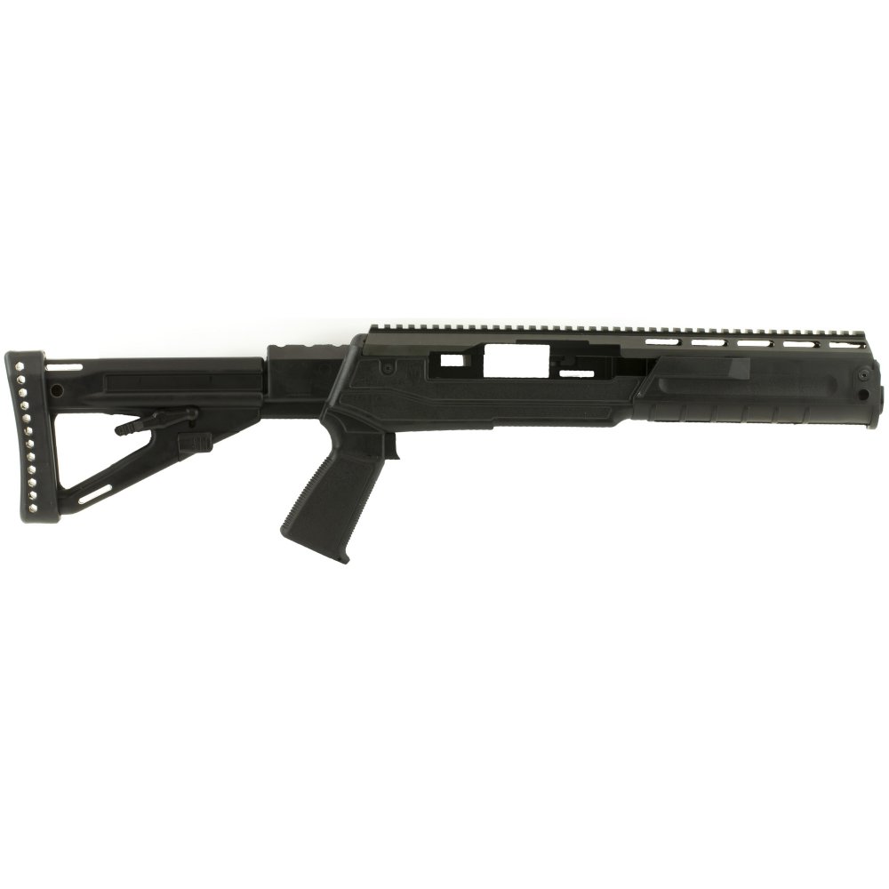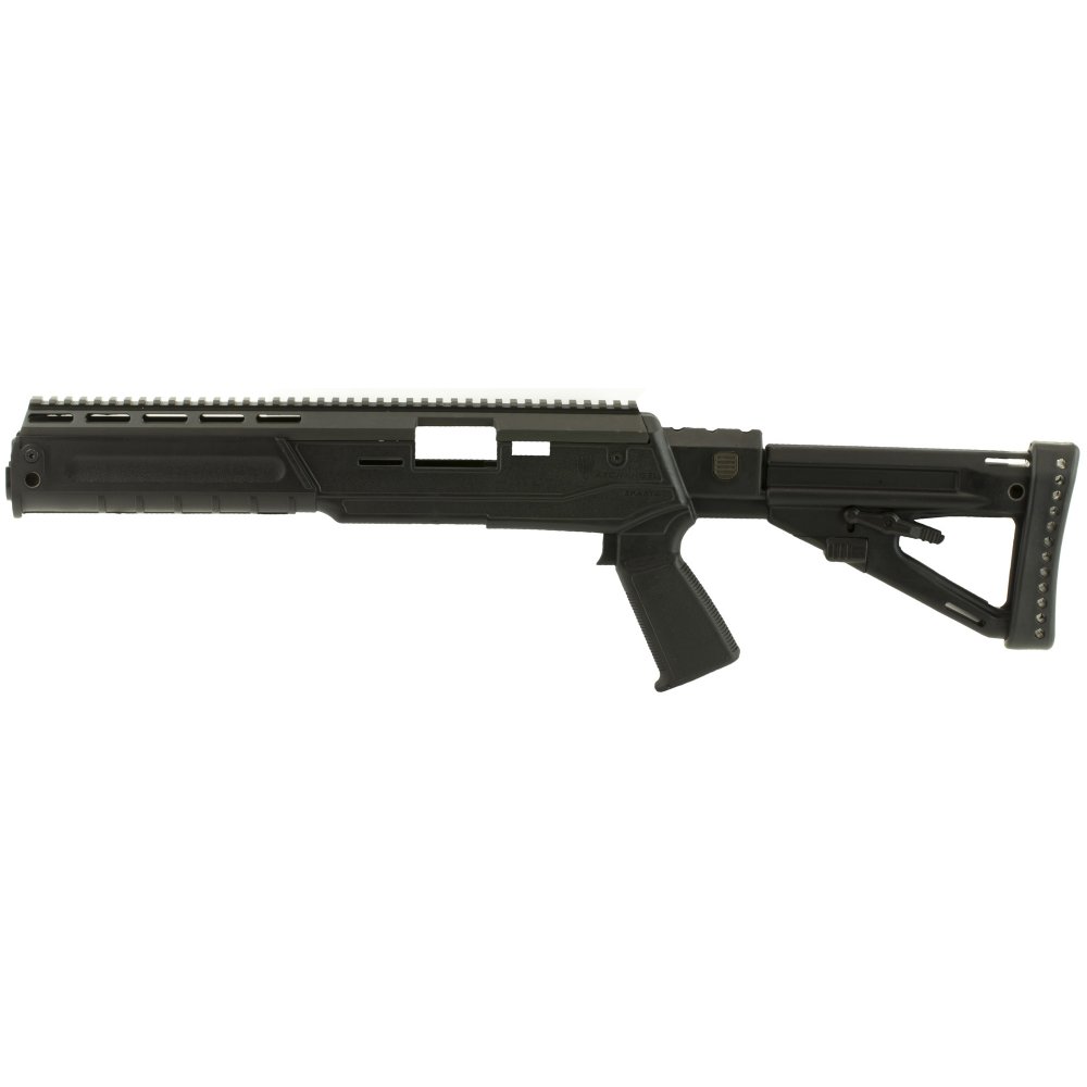 AA1430 The Sparta stock conversion offers the owners of Ruger Mini-14/Mini-30/6.8 Ranch rifles the convenience of a pistol grip stock, with an adjustable length-of-pull, and adjustable cheek-riser. Equipped with a full-length, aluminum top - rail designed to M1913 specifications, it offers a virtually limitless ability to accommodate various iron and glass sighting systems. Constructed from a proprietary, Zytel-based, carbon-fiber filled, polymer, the stock is impervious to all common firearm solvents and lubricants. The stock is equipped with four (4) hard points for push-button, quick-detach sling-swivels, and has a storage compartment in the pistol grip. The fore-end has pre-molded hard-points for a rail at the six o'clock position requiring only minor drilling to accommodate the mounting hardware (rail and mounting hardware not included).