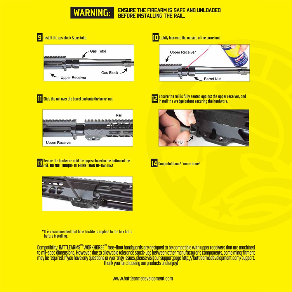 Battle Arms Development 15 Inch Workhorse Handguard, MLOK, Free-Float, Fits AR Rifles, Black