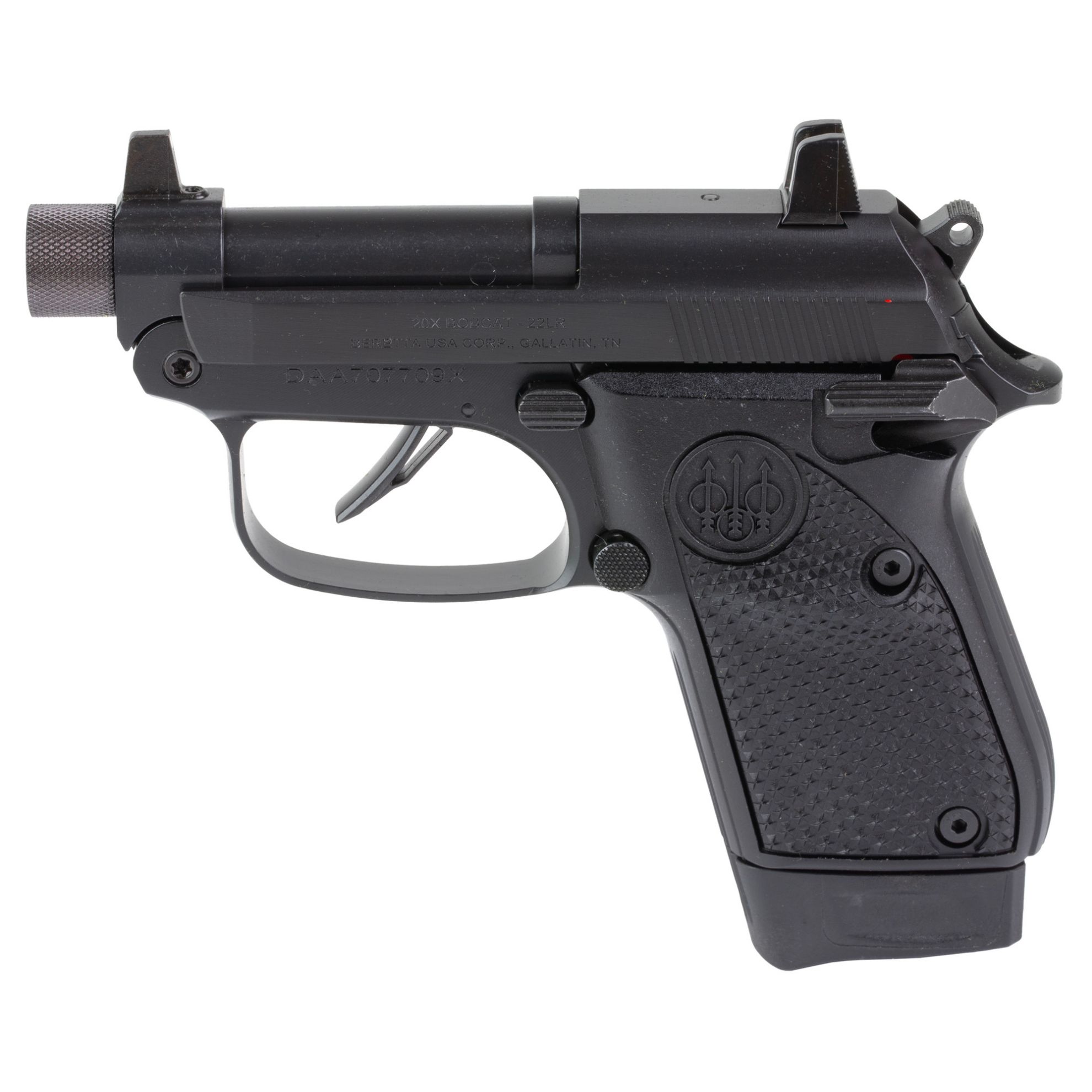 Beretta, 20X Bobcat, Do It Yourself, Semi-automatic, Double Action/Single Action, Metal Frame Pistol, Compact, 22 LR, 2.8" Threaded Barrel, Matte Finish, Black, Helica Textured Grips, Front White Dot and Blacked-Out Rear Suppressor Height Sights, 8 Rounds, 1 Magazine