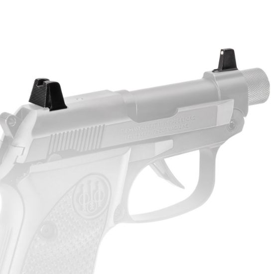 Factory tall silencer height sights for the Beretta 20X. Serrated rear, white dot front, made of steel.