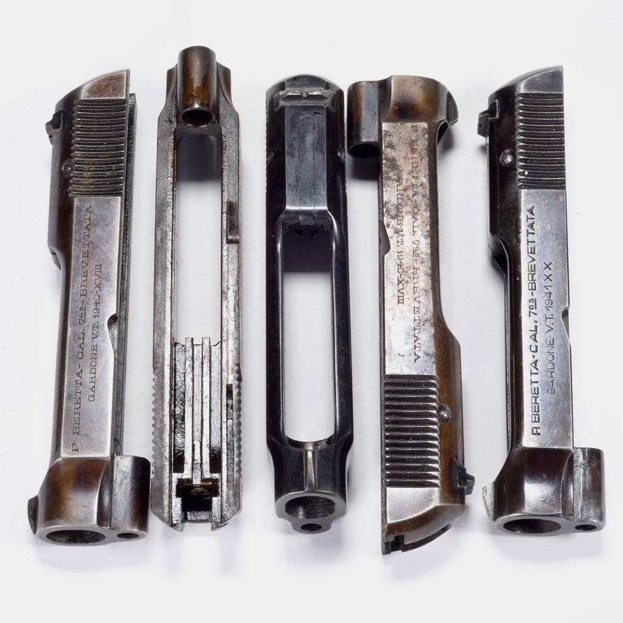 Beretta M1935 slide complete with extractor, sights, firing pin assemblies. Original Italian production, surplus G-VG condition and in perfect working order. Most of these have finish wear but very little internal wear.