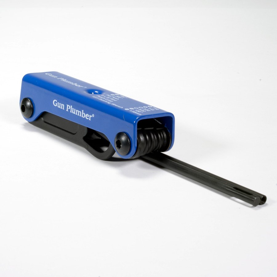 Birchwood Casey's Gun Plumber(R) handgun tool has all the tools you need to keep your revolver, 1911 and striker fired handgun operating. The Gun Plumber(R) handgun tool features an integral patch loop and separate internal threaded rod for quick and effective bore cleaning. These also function well as squib rods. This tool also features four specifically sized hollow ground, flat screw driver blades that fit most popular pistol and revolver screws. For striker fired pistols, Gun Plumber(R) has a pin pusher which doubles as a sight tool. A selection of hex and torx blades are included for grip screws and general utility.