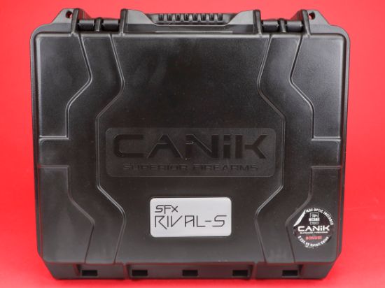 CANIK, SFX Rival-S Darkside, Striker Fire, Semi-automatic, Steel Frame Pistol, Full Size, 9MM, 5" Barrel, Matte Finish, Darkside, MeCanik MO2 Red Dot Sight, Fiber Optic Front Sight, Co-Witness Sights, 18 Rounds, 2 Magazines, Includes Competition Holster, (5) Optic Plates, (3) Sized Grips, (2) Aluminum Magazine Base Plates, Speed Loader, Cleaning Kit, Tool Kit & Punch