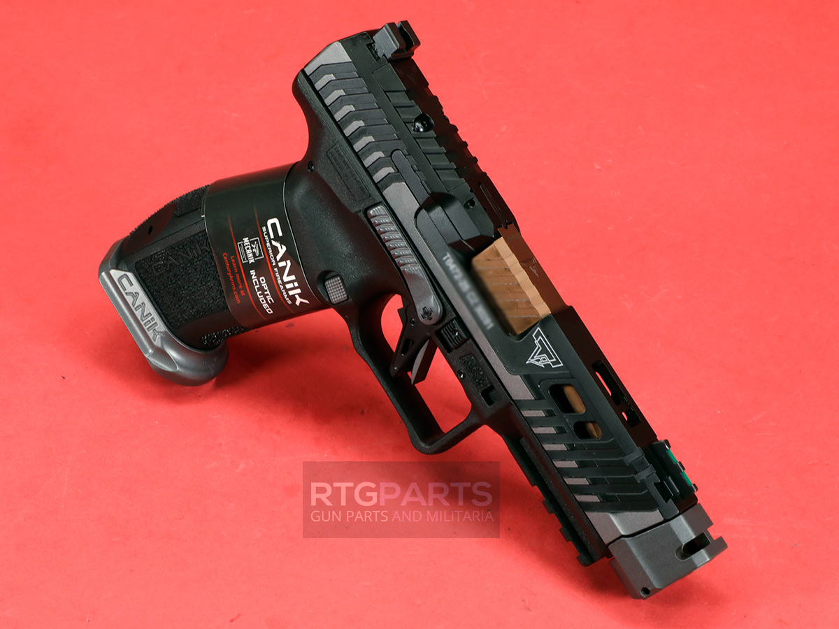 Taran Tactical Innovations and CANiK are proud to partner to bring you the CANiK TTI Combat. Built on a completely new polymer frame designed by Taran Butler, the TTI Combat brings a one-of-a-kind performance package to the CANiK lineup. This sleek design is built by the best, for the best, and includes all the features a world champion like Taran Butler needs for success. Both internally and externally, the TTI Combat delivers uniquely aggressive grip texturing, a ported and fluted barrel, the first CANiK compensator, a diamond cut, flat-faces, 90 degree break trigger. TTI +3 magazine base pads, a newly designed slide release, an optics cut that even allows for a low profile seating of the MECANIK line of optics as well as the Trijicon SRO and many others, a custom holster, and travel hard case. To finish off this collectable package Canik has included a handsome collaboration coin to commemorate our lasting partnership. This partnership has created a truly superior firearms!