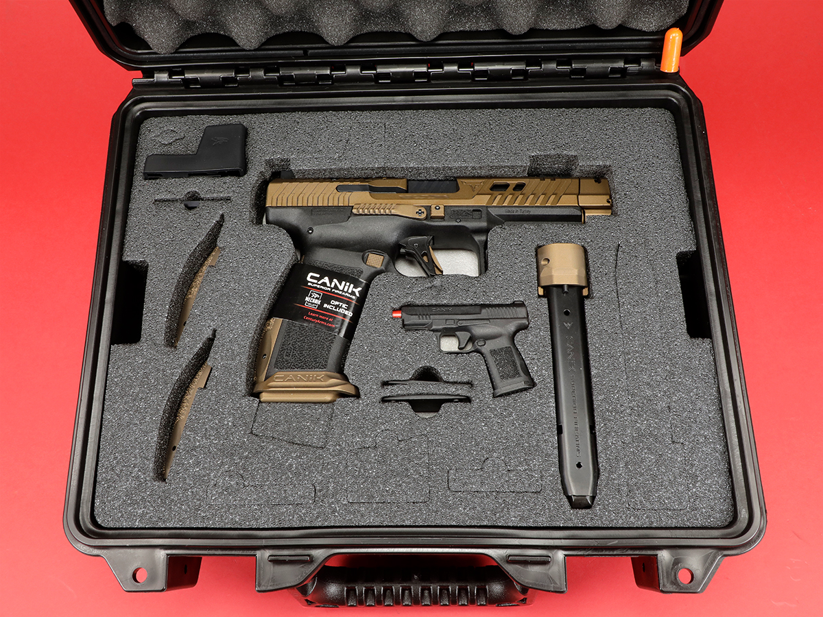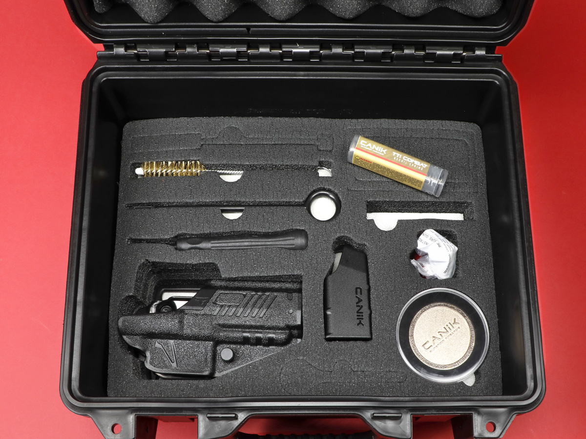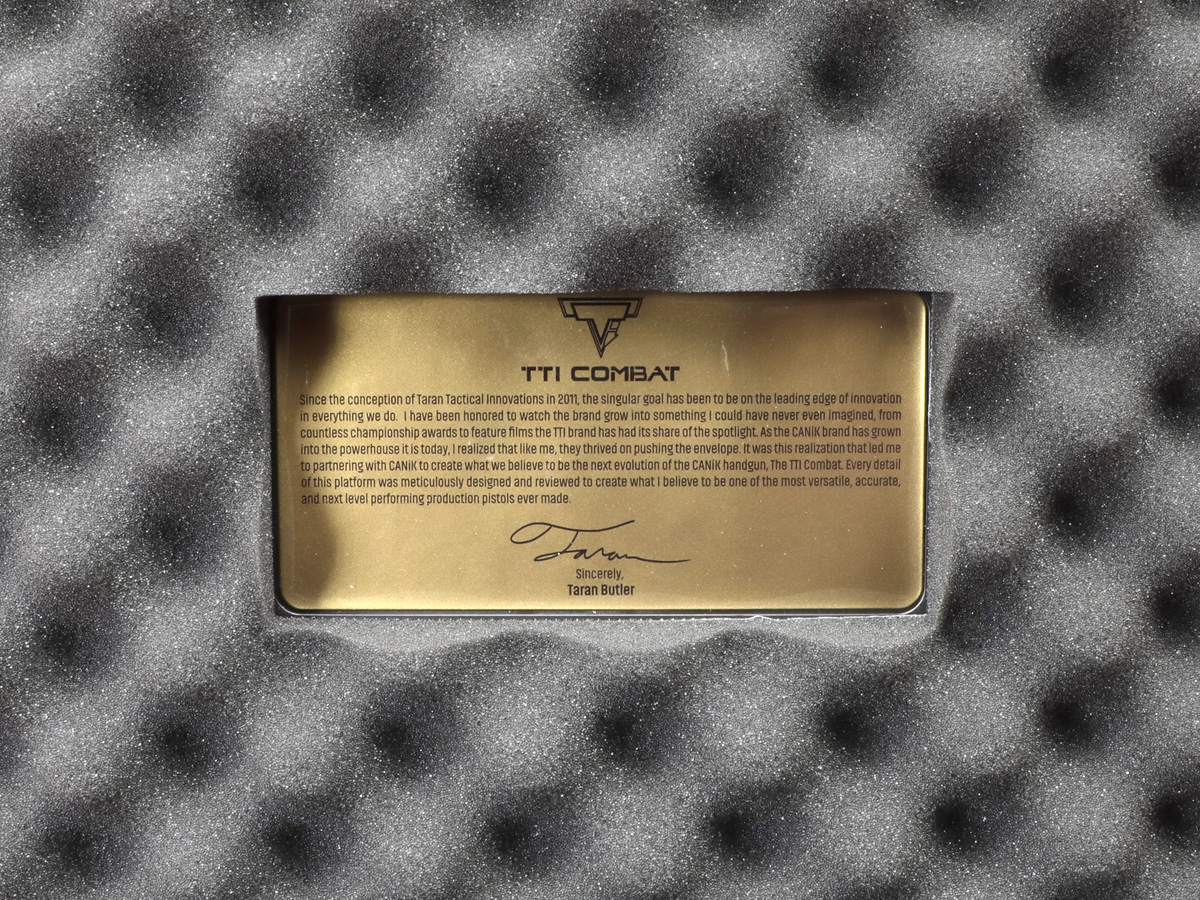 Taran Tactical Innovations and CANiK are proud to partner to bring you the CANiK TTI Combat. Built on a completely new polymer frame designed by Taran Butler, the TTI Combat brings a one-of-a-kind performance package to the CANiK lineup. This sleek design is built by the best, for the best, and includes all the features a world champion like Taran Butler needs for success. Both internally and externally, the TTI Combat delivers uniquely aggressive grip texturing, a ported and fluted barrel, the first CANiK compensator, a diamond cut, flat-faces, 90 degree break trigger. TTI +3 magazine base pads, a newly designed slide release, an optics cut that even allows for a low profile seating of the MECANIK line of optics as well as the Trijicon SRO and many others, a custom holster, and travel hard case. To finish off this collectable package Canik has included a handsome collaboration coin to commemorate our lasting partnership. This partnership has created a truly superior firearms!