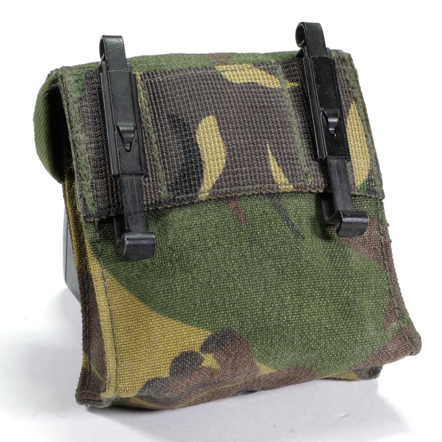 Dutch small magazine pouch with dual alice clips. Not sure what type of mag this held but it measures: 4.3 x 3.9 x 1.5 Inch. Holds a 20rd AR magazine but looks like it originally held a 10rd or 15rd .308 magazine.