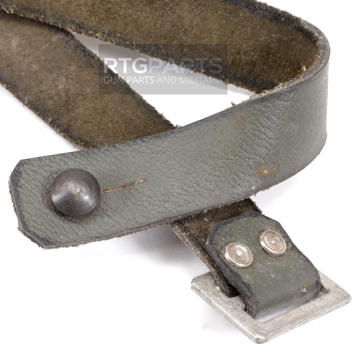 Hard to find, original green leather sling for the M39 Mosin Nagant. Includes green sling with riveted metal buckle and metal stud. Surplus very-good condition and in great working order.