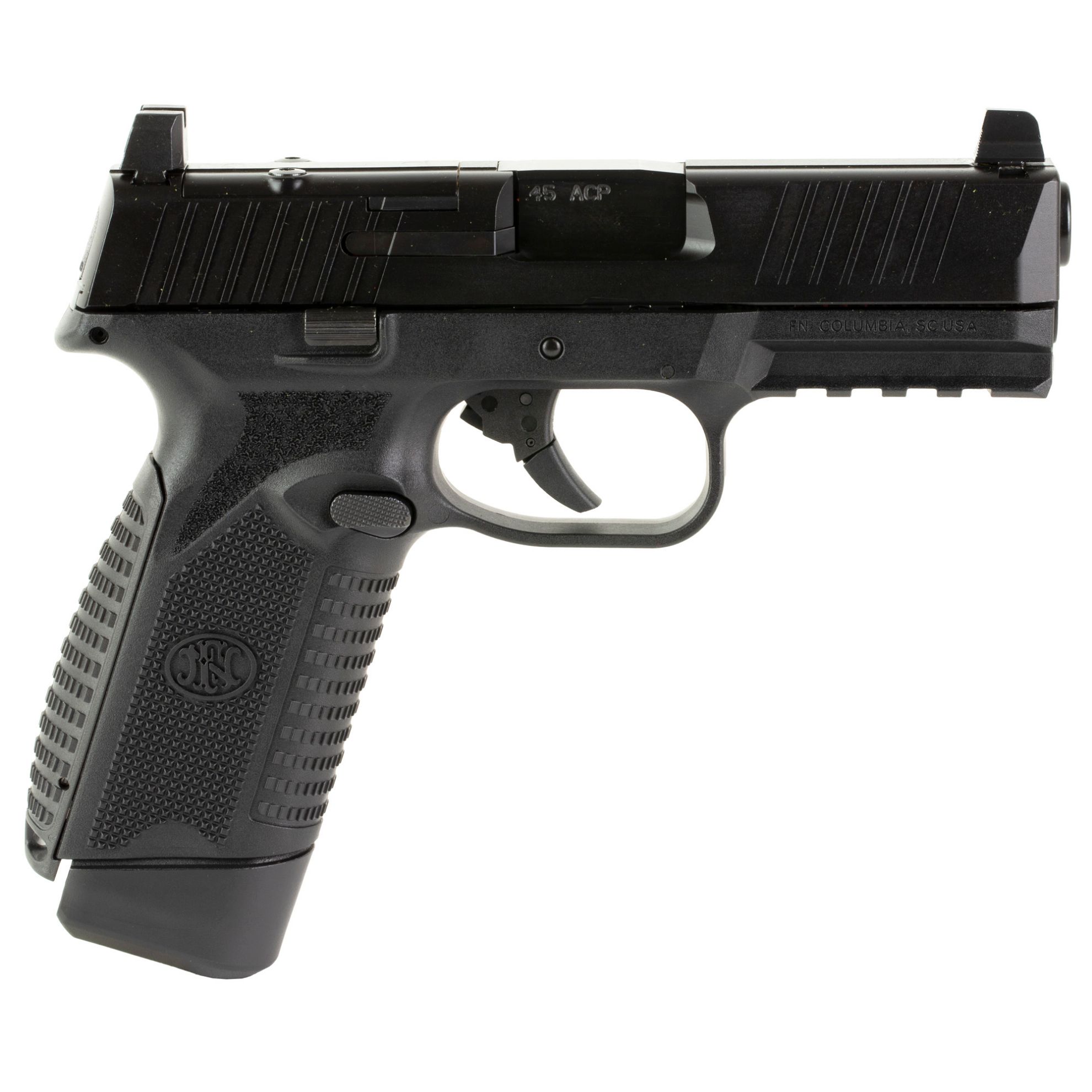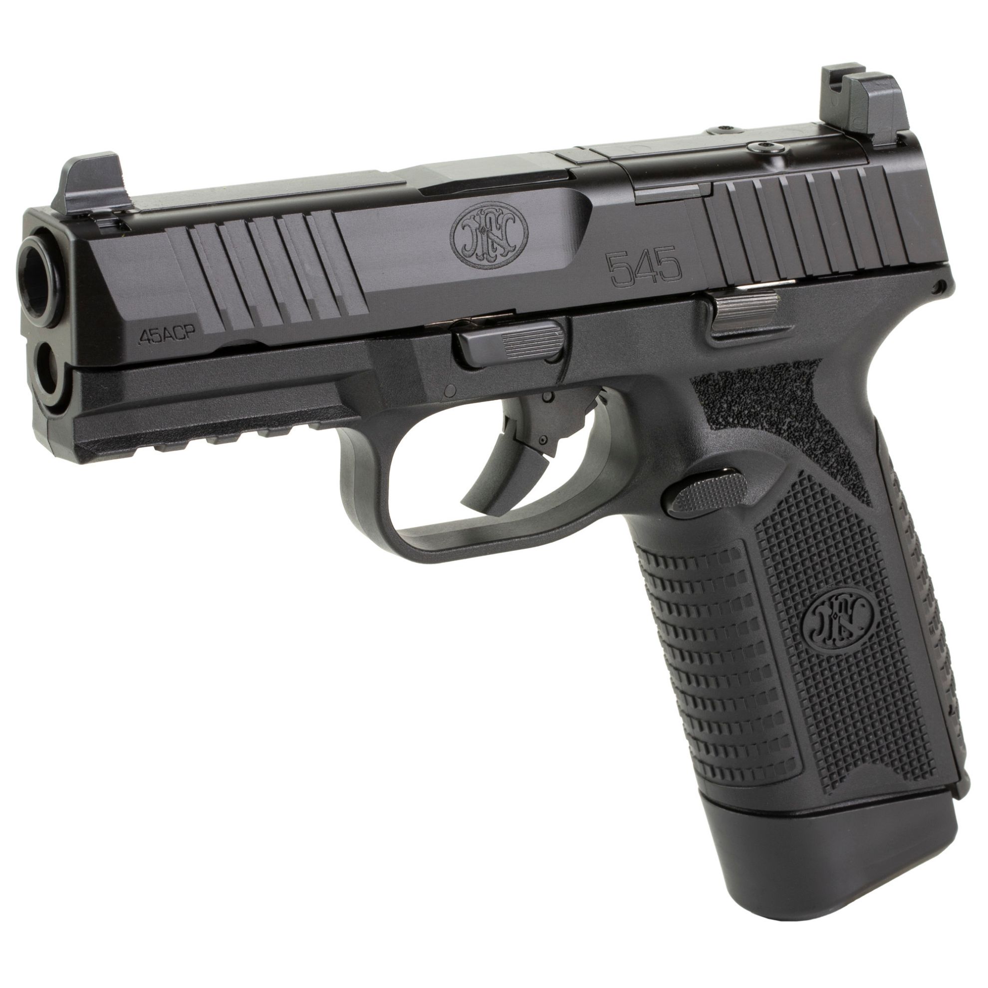 FN America, FN 545 MRD, Semi-automatic, Striker Fired, Polymer Frame Pistol, Full Size, 45 ACP, 4.1" Barrel, Anodized Finish, Black, Optic Height Sights, Optics Ready, 15 Rounds, 2 Magazines