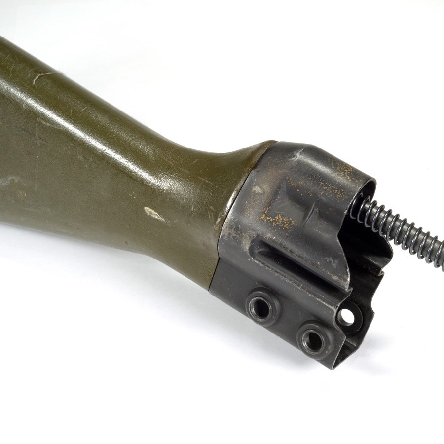 German army surplus green buttstock complete with recoil and buffer assemblies. This is a complete assembly ready to pin onto your G3 or clone.
