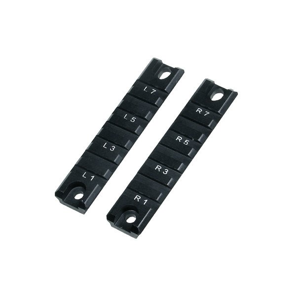 - Two 3 7/8" Picatinny rails each with 7 numbered slots