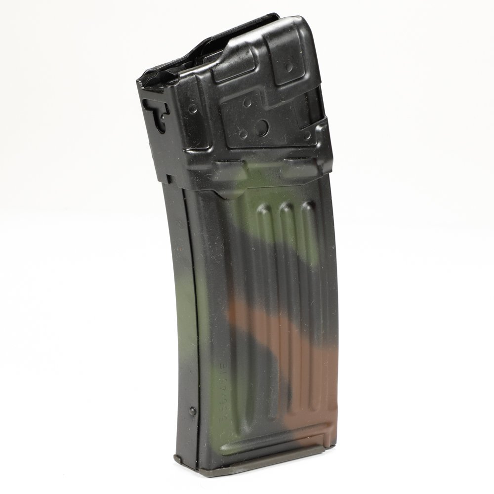 New in wrap, original German HK93 forest camo 25rd steel magazine. Hard to find, original 80's import.