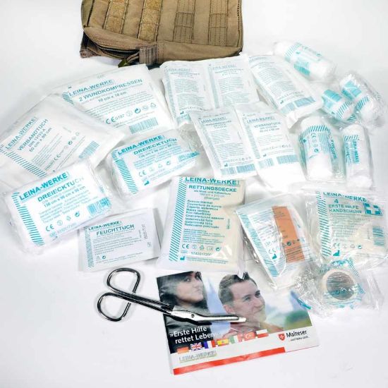 Be prepared with this German made, Molle compatible, 43-piece first aid kit. MADE IN GERMANY by Leina-Werke GmbH