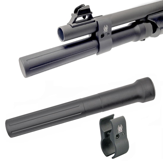 The Benelli Nova SuperNova Three-Shot Magazine Tube Extensions with Barrel Clamp