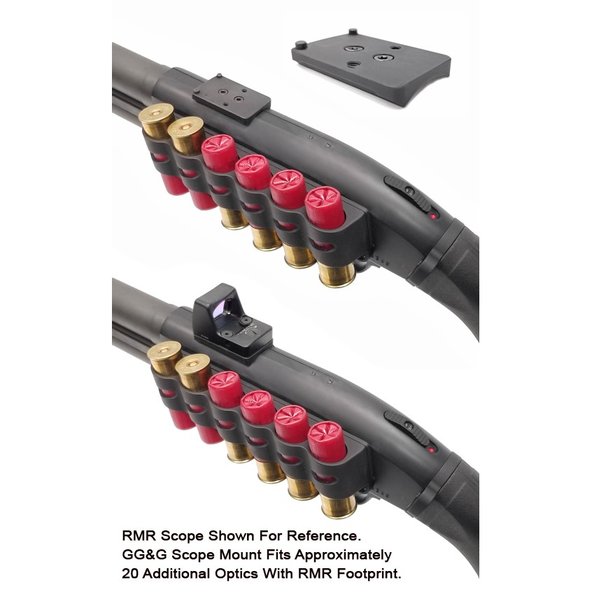 The Mossberg 500 and 590 Shotguns are being equipped with Red Dot Optics like the Trijicon RMR. Red Dot Optics are an extremely popular tactical accessory for the Mossberg shotguns. The GG&G Mossberg 500 and 590 Low Profile Red Dot Optic Mount has the RMR fitment or attachment layout. However, the 500/590 Red Dot Scope Base fits approximately 20 other red dot optics, but beware of screw lengths. The mounting hardware supplied in this package is only tested to fit the Trijicon RMR optic.
