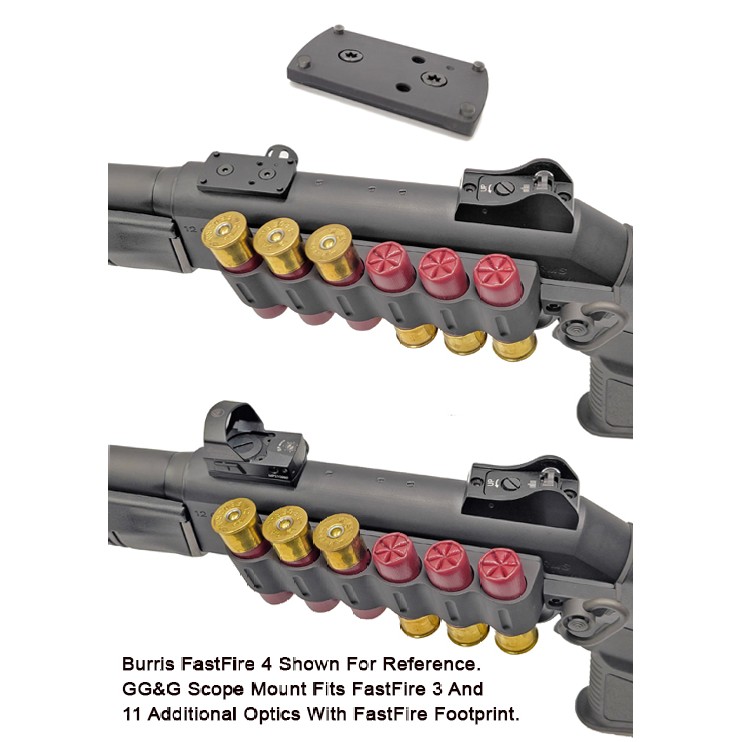 The Burris FastFire 3 and FastFire 4 mini red dots are super popular as a quick target acquisition setup for shotguns. This GG&G Panzer M4 FastFire Scope Mount Mount has the fitment or attachment layout of the Burris FastFire 3 and FastFire 4 Red Dot Optic. Please keep in mind that many red dot manufacturers use the same footprint layout. That's why the GG&G Panzer M4 Low Profile FatFire Red Dot Scope Base fits approximately eleven other red dot optics but please beware of screw lengths. The mounting hardware supplied in this package is only tested to fit the FastFire 3 and 4 optics.