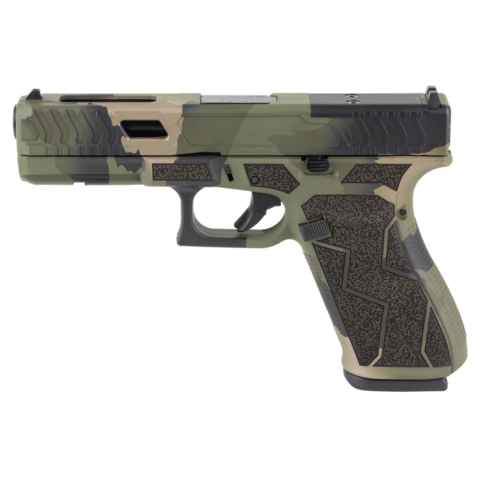 The standards of performance and reliability can't be beat now with the option to add an optic to the new G20 Gen5 MOS. All of the Gen5 qualities are present in this compact-size pistol: The latest GLOCK nDLC surface finish, unmatched in hardness and rust resistance; the high traction Gen5 frame texture, quickly reversible magazine catch, ambidextrous slide stop lever, the GLOCK Modular Backstrap System (MBS) for individual operator adjustability, the universally-acclaimed GLOCK Safe Action System and high visibility orange magazine followers. This Exclusive model features a custom M81 Torn Camo Cerakote Finish from Shark Coast Tactical paired with a Laser Stippled Grip.