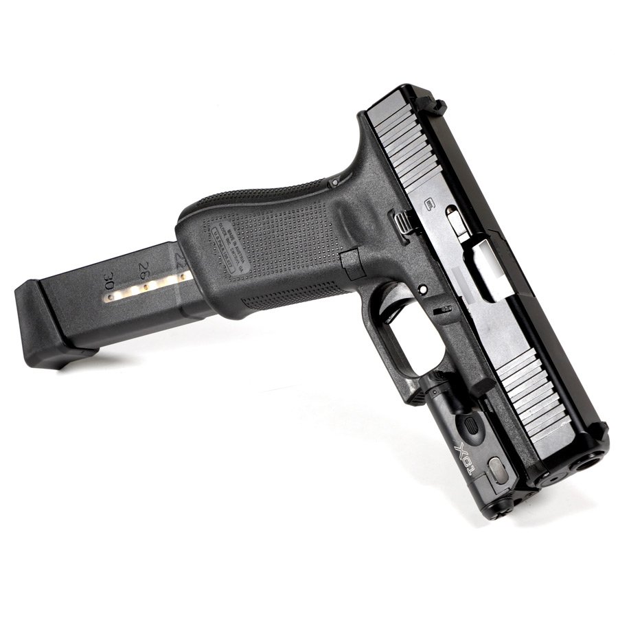 The AC-Unity 32rd 9mm window magazine for Glock models 17, 18, 19, 19X, 26, 34, 45. Will work in anything designed to accept a Glock Model 17 9mm magazine.