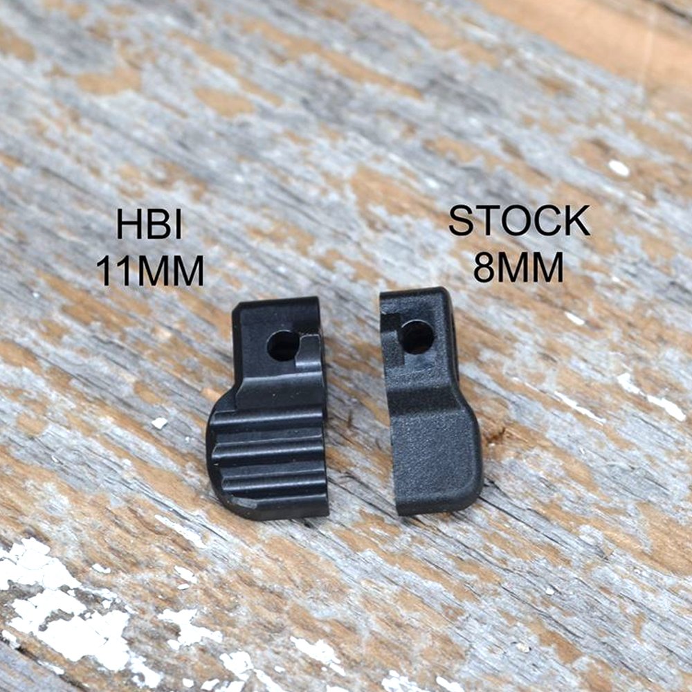 Drop in Extended Safety Selectors for your CZ Bren 2. Our safety selectors feature large finger pads extended by 3mm with an aggressive rib texture; the increased surface area in turn reduces the amount of pressure needed to throw the selectors. The ribs provide additional traction over the factory molded parts. Machined from billet 6061T6 aluminum and hard coat anodized to MIL-A-8625. Sold in pairs complete with replacement roll pins.