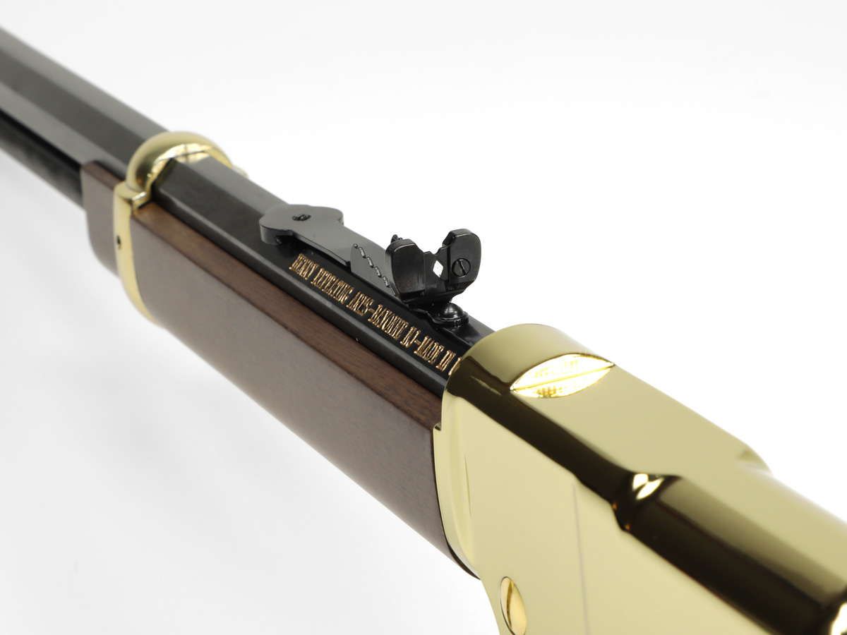 The Henry Golden Boy is a masterpiece of fine crafted gunsmithing. Any shooting enthusiast who closely examines one is immediately impressed with the excellent fit, finish and overall visually elegant design. The Golden Boy rifles awesome 20" blued octagonal barrel, American walnut stock, brass buttplate and gleaming Brasslite receiver will transport you back to the wild and wooley days of America's Old West, when our company founder Benjamin Tyler Henry designed the original Henry lever action rifle.