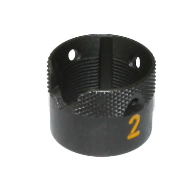 Markings 2, 3, 4 are painted a yellow-orange and the V-notch is blank. This blank variety is most commonly found on HK33 and HK53 weapons, but was also used on later production G3 rifles. Earlier G3 productions used the same drum with a painted number 1 at the V-notch position.