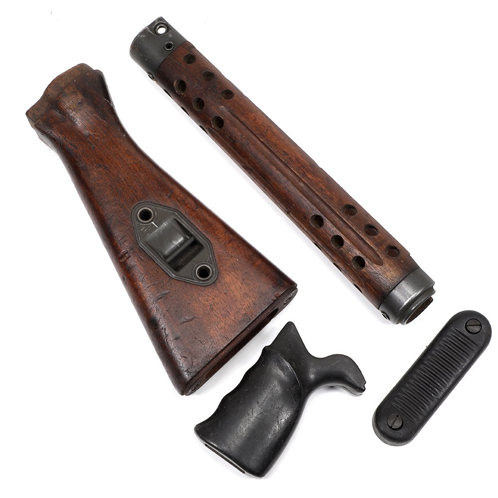 German HK G3 wood stock set in surplus good condition. Includes buttstock, buttpad, buttpad screws and washers, grip and handguard. This set is off a demilled HK G3 from the German army.