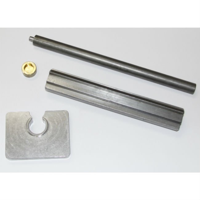 Here’s a great tool designed to facilitate removing and installing barrels from built HK style guns. The plate and rod shown in the receiver are for pressing the barrel out of the trunnion and the bigger round part in the background and brass cap are for installing the barrel in a welded receiver.