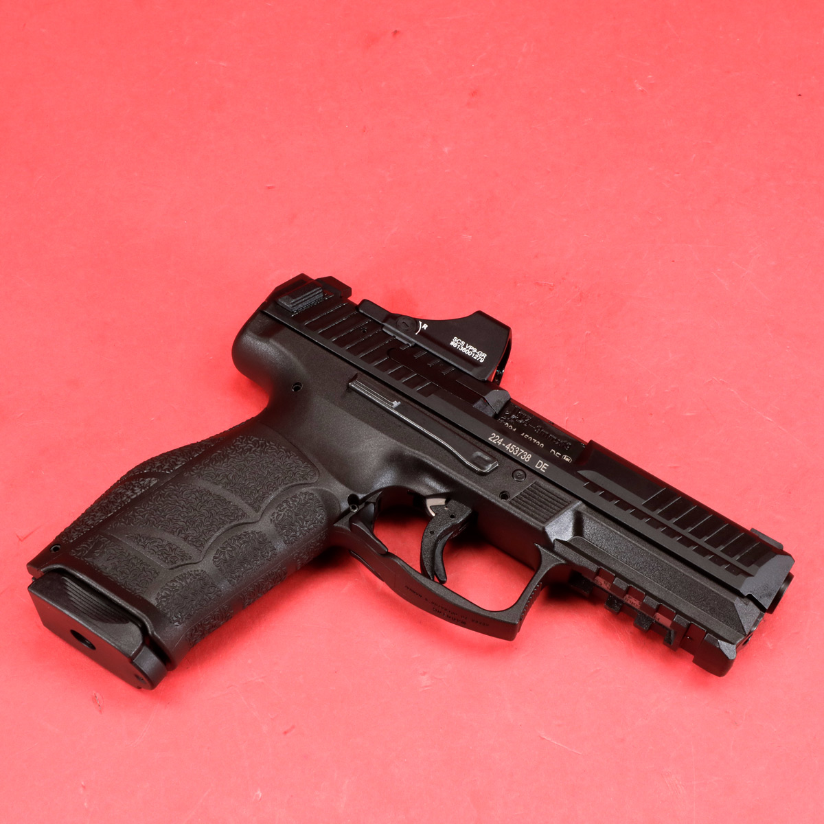 Heckler & Koch, VP9A1 X Crossover, Semi-automatic, Striker Fired, Polymer Frame Pistol, Compact, 9MM, 4.09" Hammer Forged Barrel, Black, Interchangeable Backstraps and Side Panels, Tritium Front Sight, Black Serrated Rear Sights, Optics Ready, Includes Holosun SCS, Paddle-Style Mag Release, (1)-20 Round and (1)-17 Round Magazine