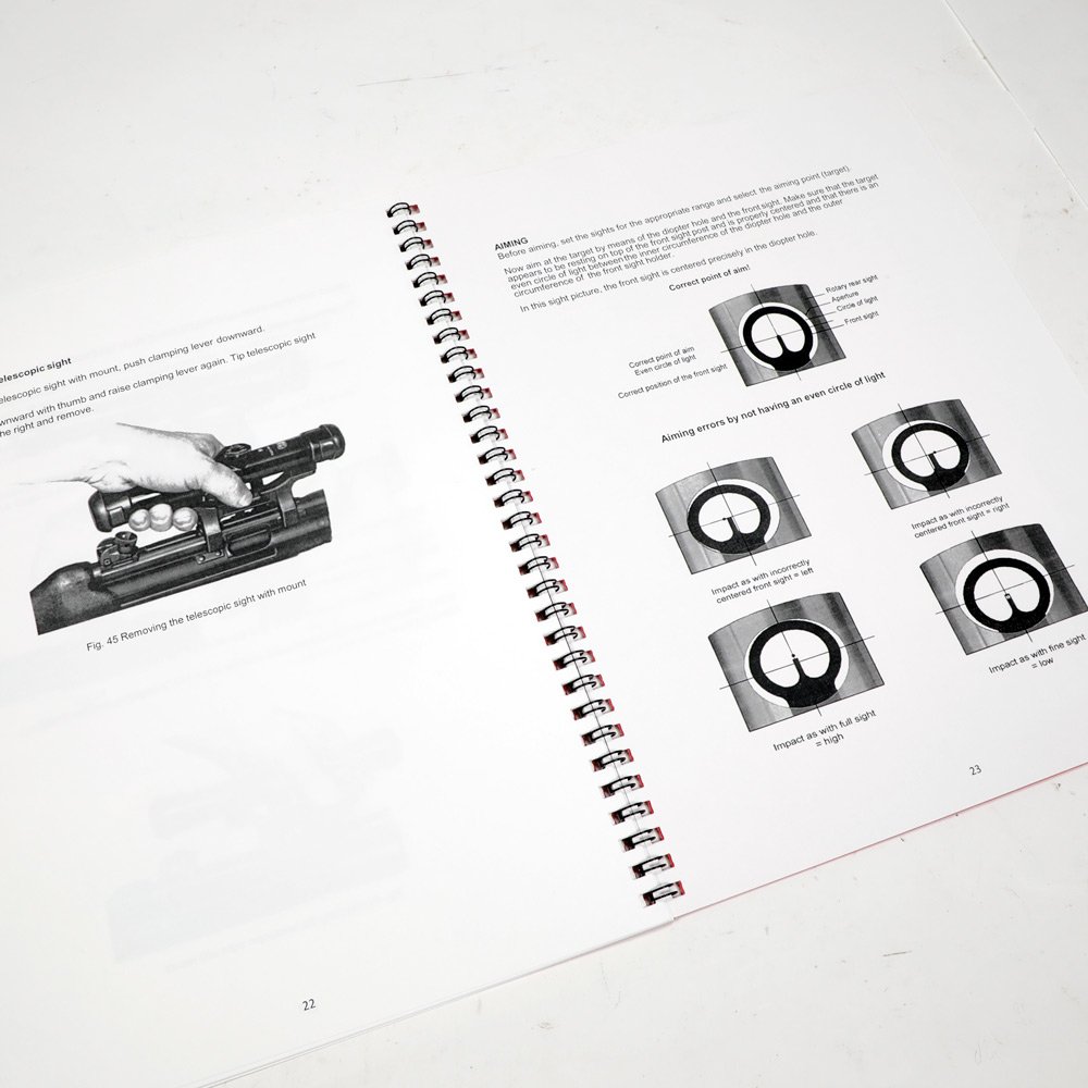 HK Manual for the HK94 (semi-auto MP5). Enlarged copy of the original red manual that came with the HK94. Each manual is new and has many pictures to help with sight alignment, disassembly, reassembly, maintenance and much more.