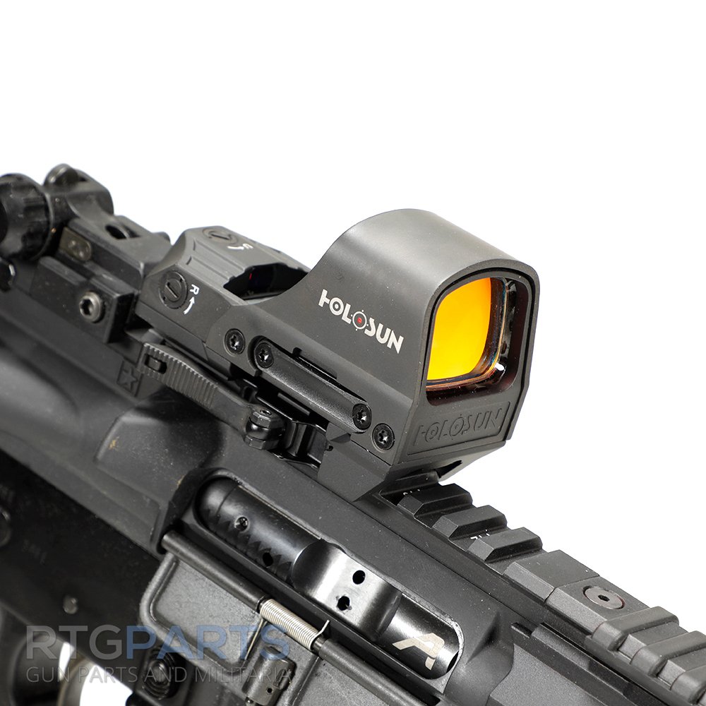 Holosun Technologies, Open Reflex, 2MOA Dot or 2MOA Dot with 65MOA Circle, Solar with Internal Battery, Quick Release Mount, AR Riser, Protective Hood, Black Finish