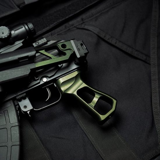 The SPG-AK was designed to give the shooter ergonomic control of their firearm by matching the natural contour of the shooting hand grip while incorporating a textured front and rear surface allowing the proper use of pressure where it's needed the most. The design of the SPG-AK was inspired by our SFG (Skeleton Forward Grip) and together, they make a great addition to your firearm!