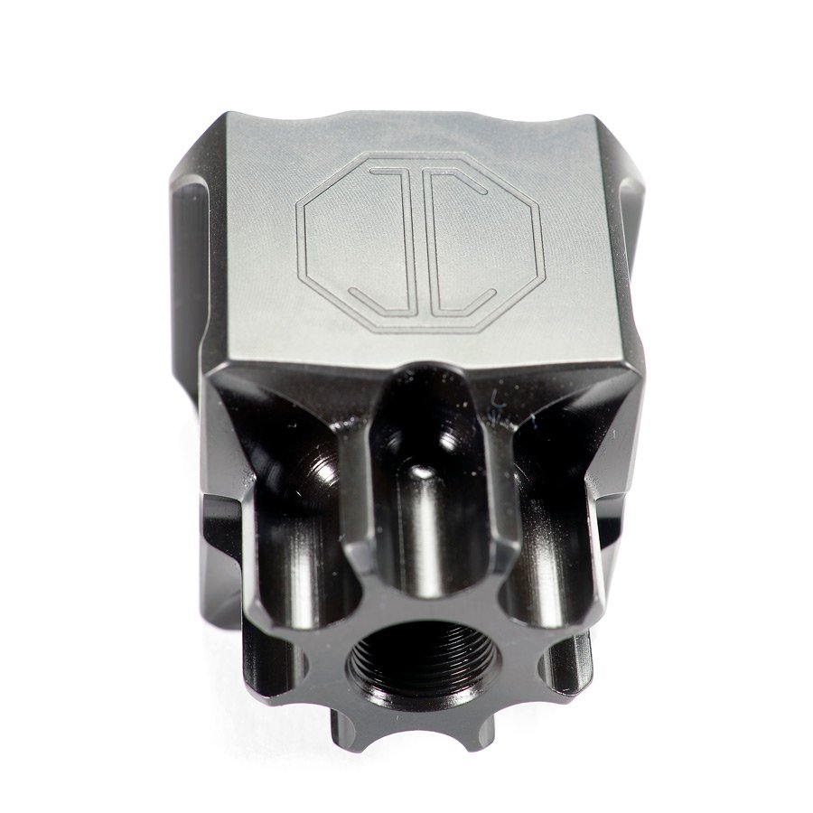 The LAF (Loud And Flashy) is a LARGE single chamber muzzle brake designed to enhance sound and flash, while reducing recoil and muzzle rise!