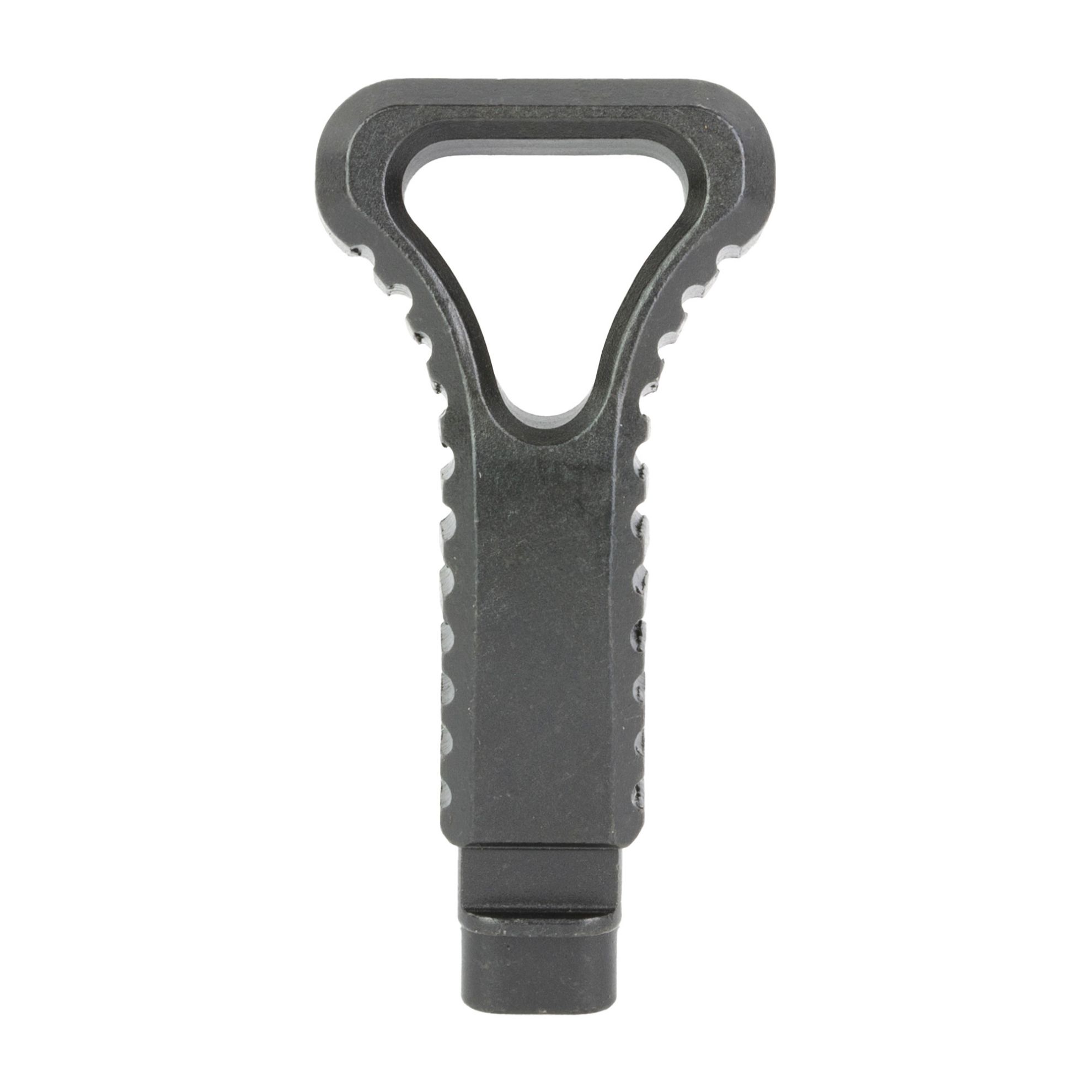 The Scarging handle fits both 5.56 and 7.62 NATO versions of the NRCH FN Scar models and installs in seconds. The radius-faced design and swept geometry of the Scarging Handle allows the user to achieve a more solid grasp when manipulating the bolt. This allows for easier charging, clearing of stoppages, and administratively locking the firearm bolt to the rear. The shooter can choose between left or right-side installation to match their hand dominance and can rotate the Scarging Handle to either downward or upward sweep. The downward sweep protects the hand from busted knuckles due to optics mounts by keeping it down and away from the weapon's top. This also has the added benefit of additional leverage gained, and increased grasping surface for larger hands or when wearing gloves. All Scarging Handles are constructed of low carbon steel and finished with black Nitride.