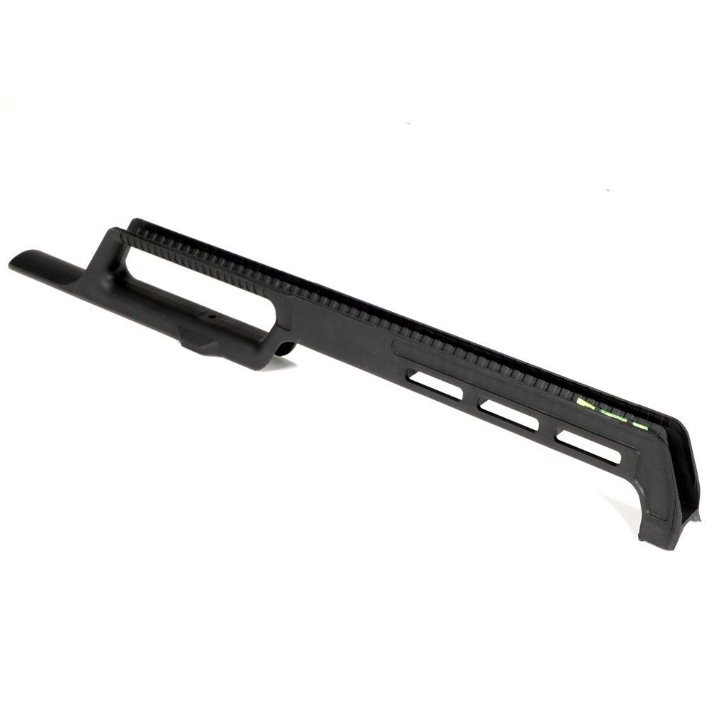 This Polymer Shotgun Carry Handle accessory replaces the Picatinny-style rail with a carry handle which includes a fiber optic sight system and M-LOK slots for mounting accessories.