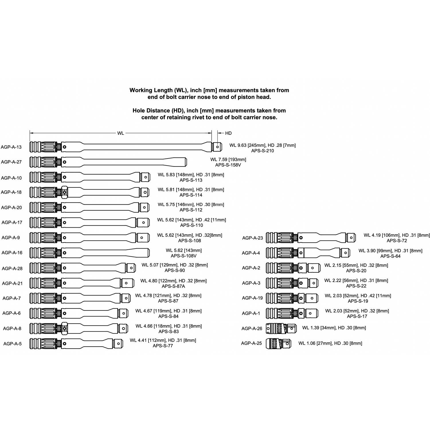 **When selecting your piston please refer to the charts pictured above to ensure maximized compatibility with your firearm.**