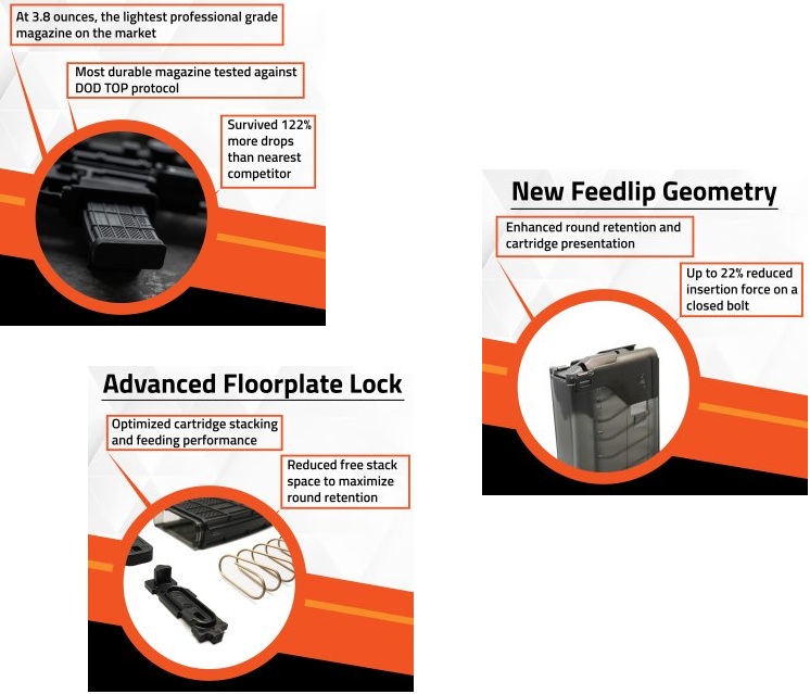 • At 3.8 oz., the L5AWM GEN 2 is the lightest weight professional grade magazine on the market, and up to 36% lighter than other polymer magazines