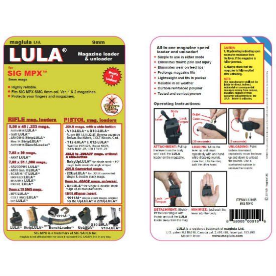 SIG MPX LULA™ loader and unloader. Fits SIG MPX 9mm-type polymer magazines Ver #1 & Ver #2.