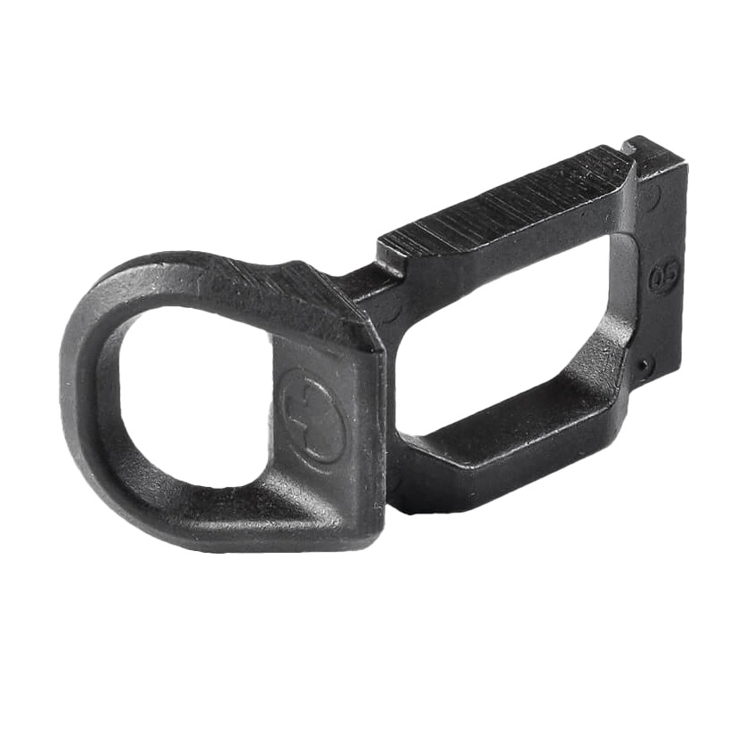 The SGA Receiver Sling Mount is a connection point for the Remington 870 SGA Shotgun Stock and one-point clip-in style attachments such as the MS3 Paraclip, the HK hook, ITW MASH hook, and others. Made from precision cast steel that is Melonite treated for wear and corrosion resistance. Dedicated fit for the Magpul SGA Stock, the Receiver Sling Mount can be installed on either the left or right side of the front of the stock. Made in U.S.A.