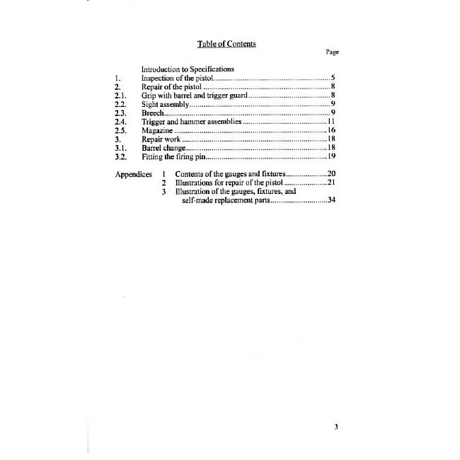 This 1974 dated East German repair manual for the 9x18 Makarov pistol shows how to replace the barrel, how to correct problems with the trigger system, safety, and magazine, and also has an in depth section on troubleshooting and how to fix possible problems. This 80 page, well illustrated manual thoroughly covers what can go wrong, and how to fix it. As usual for a German or East German repair manual, there are lots of part pictures to show how to fix it and where to file or correct a mis-shaped part.
