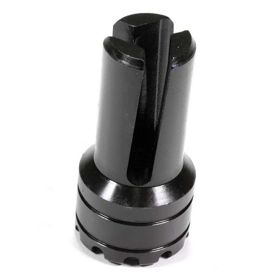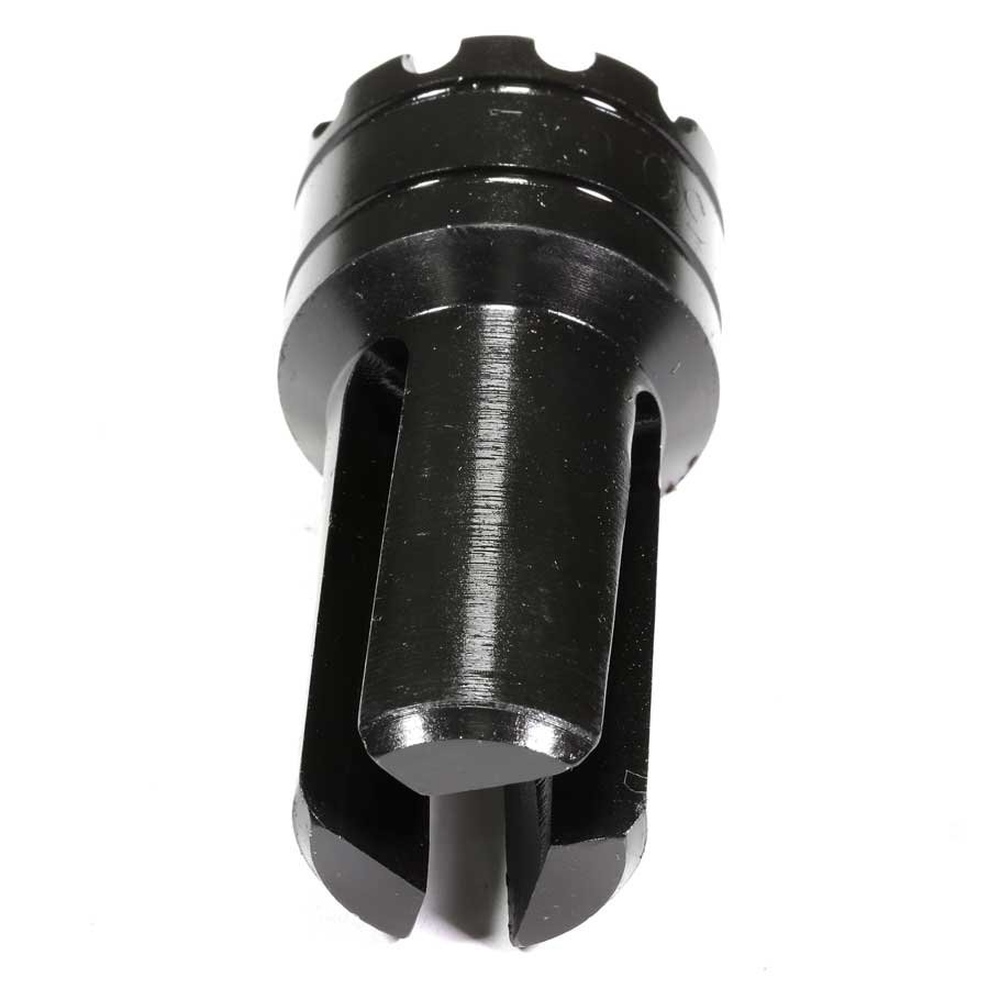 Designed specifically for the .308 and 7.62 mm caliber cartridge the Eclipse Flash Hider uses a slightly twisted triple prong design to reduce flash to near zero in even total darkness conditions. The device is threaded 26.5 x 1 for the unusual threads of the Yugo M85 and M92 PAP "krinkov" style pistols and rifles, and will clear any projectile up to .311 caliber and 7.62 mm. Do not use with larger calibers. The Eclipse Flash Hider is marked "MA" and "30" and has multiple detent notches to thread down as far as possible on the muzzle.
