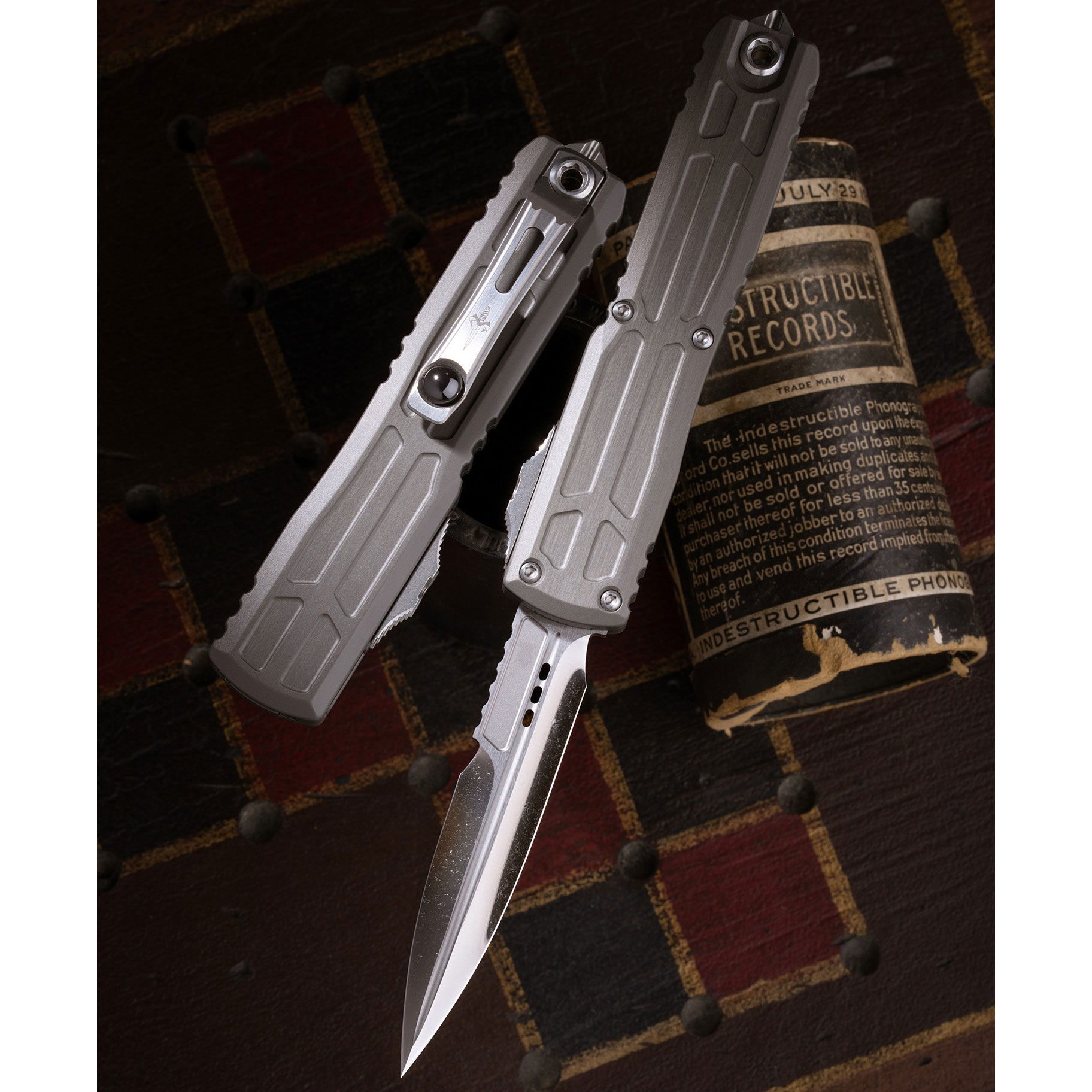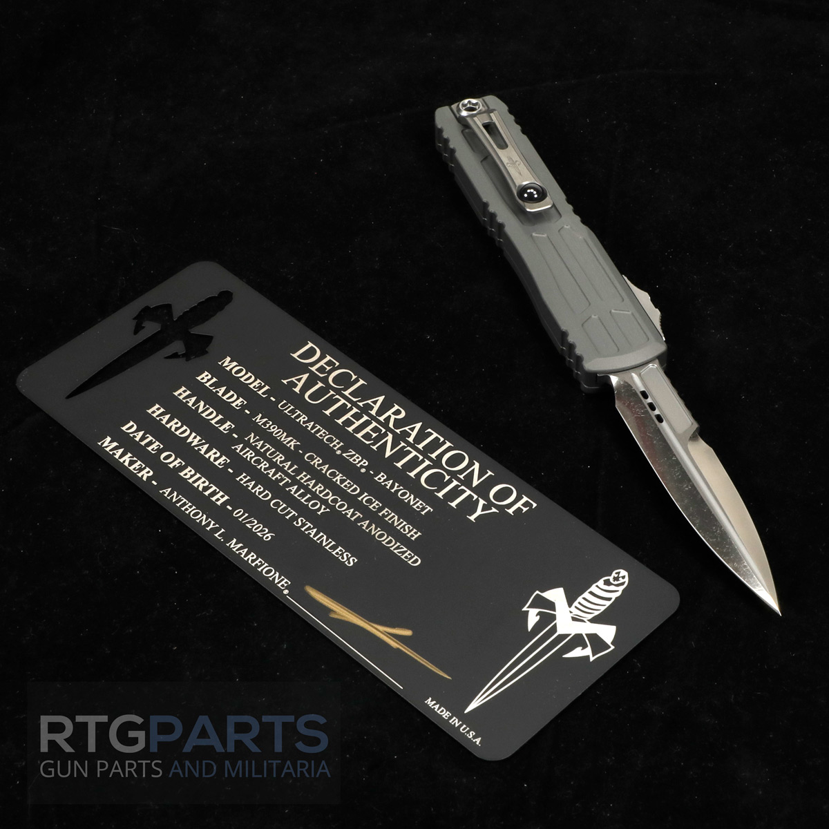 Marfione Custom, Ultratech EX ZBP, Zero Blade Play, Bayonet OTF, Automatic Knife, Natural Hardcoat, (3.5 Inch), M390, Double Edge Bayonet, Cracked Ice Finish, Made in the USA, 1120EX-CINCHCS-MCK